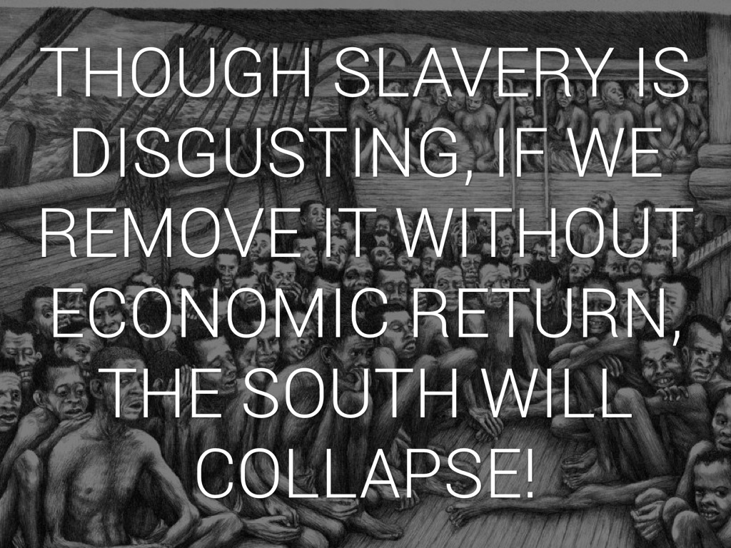 THOUGH SLAVERY IS DISGUSTING, IF WE REMOVE IT WITHOUT ECONOMIC RETURN, THE SOUTH WILL COLLAPSE!