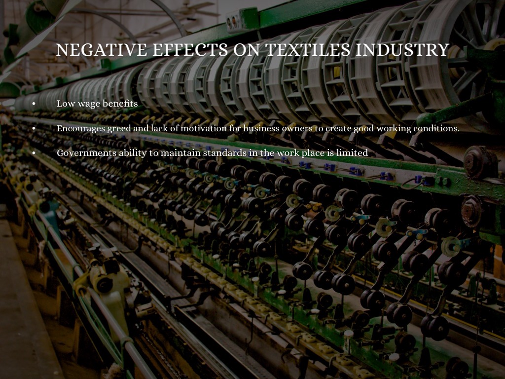 NEGATIVE EFFECTS ON TEXTILES INDUSTRY