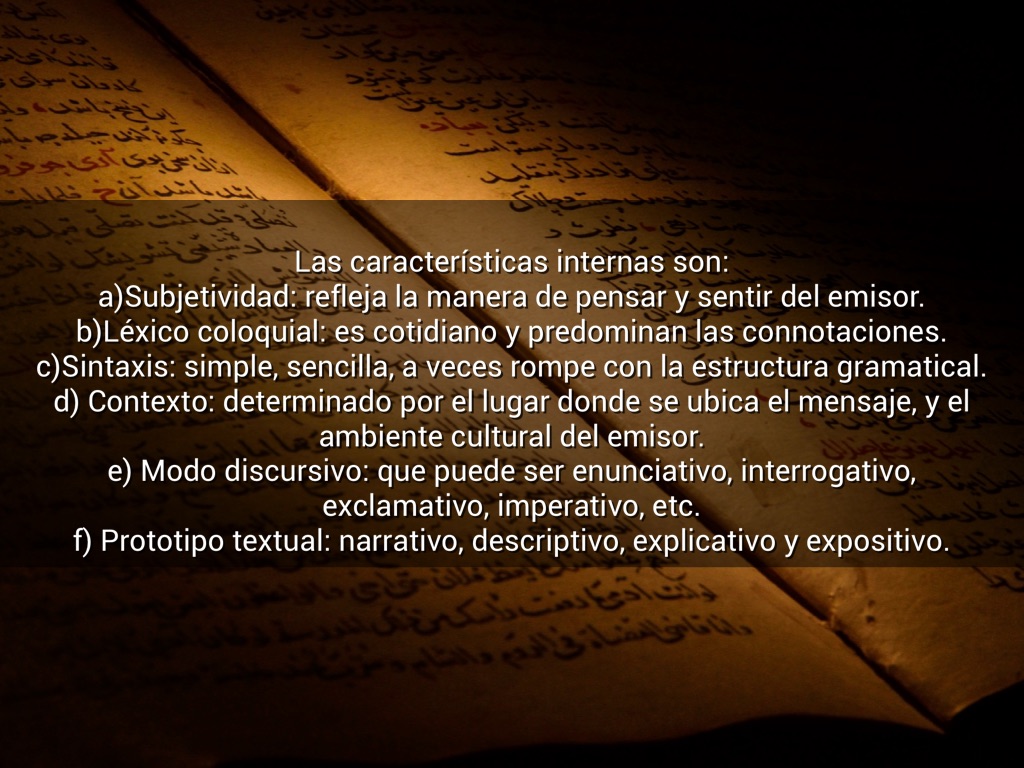 a)Subjetividad: refleja la manera de pensar y sentir del emisor.