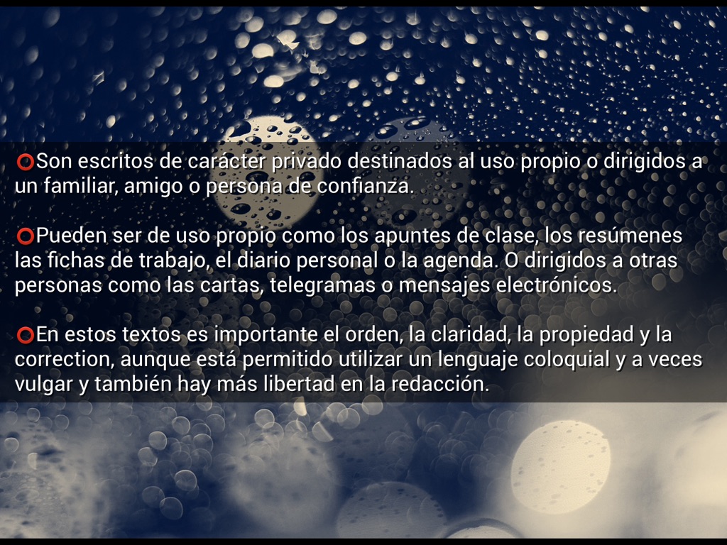 ⭕️Son escritos de carácter privado destinados al uso propio o dirigidos a un familiar, amigo o persona de confianza.