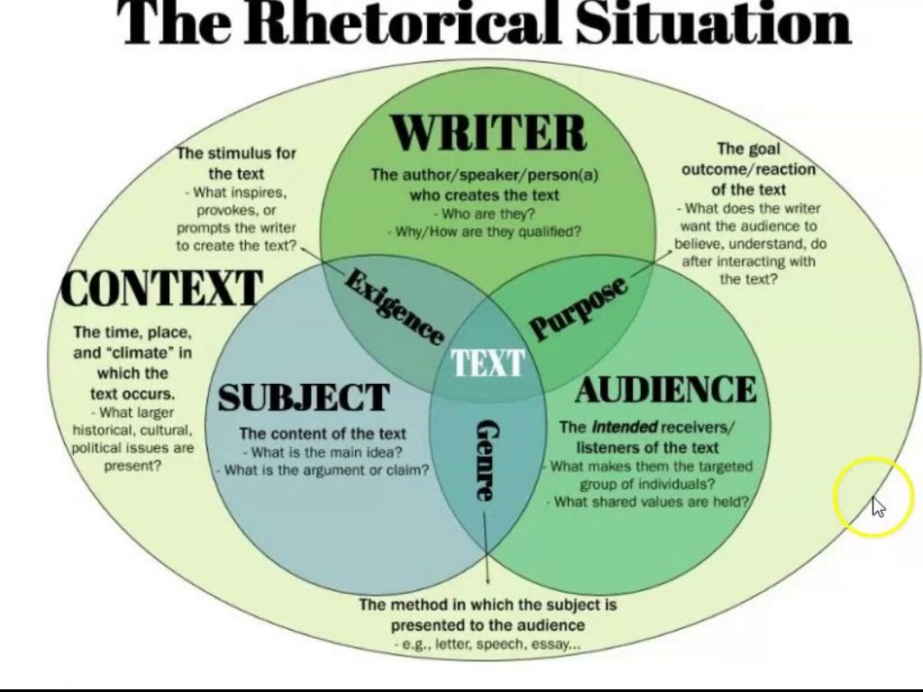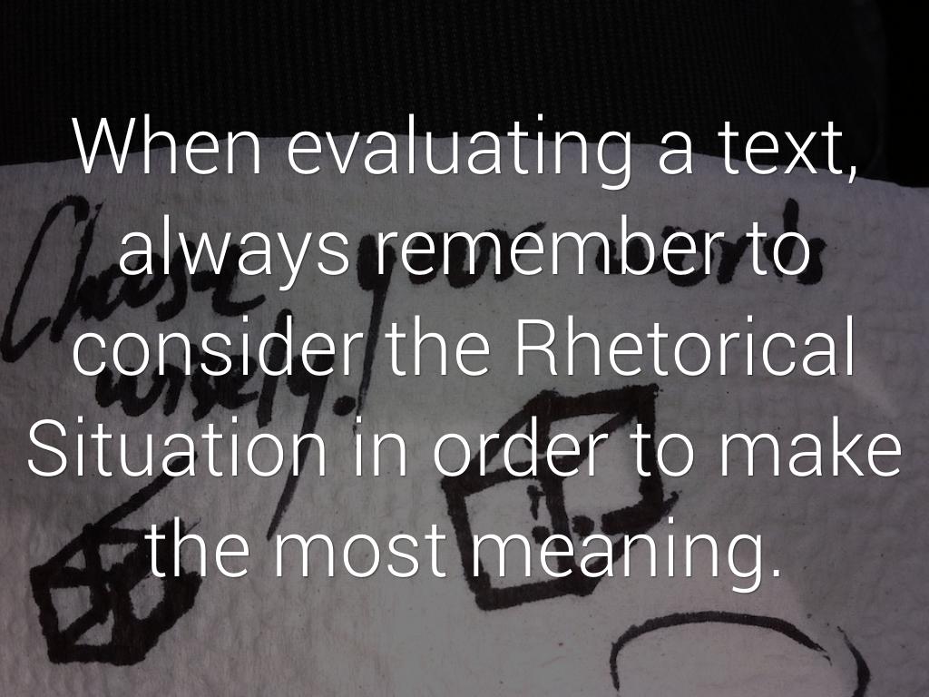 When evaluating a text, always remember to consider the Rhetorical Situation in order to make the most meaning.