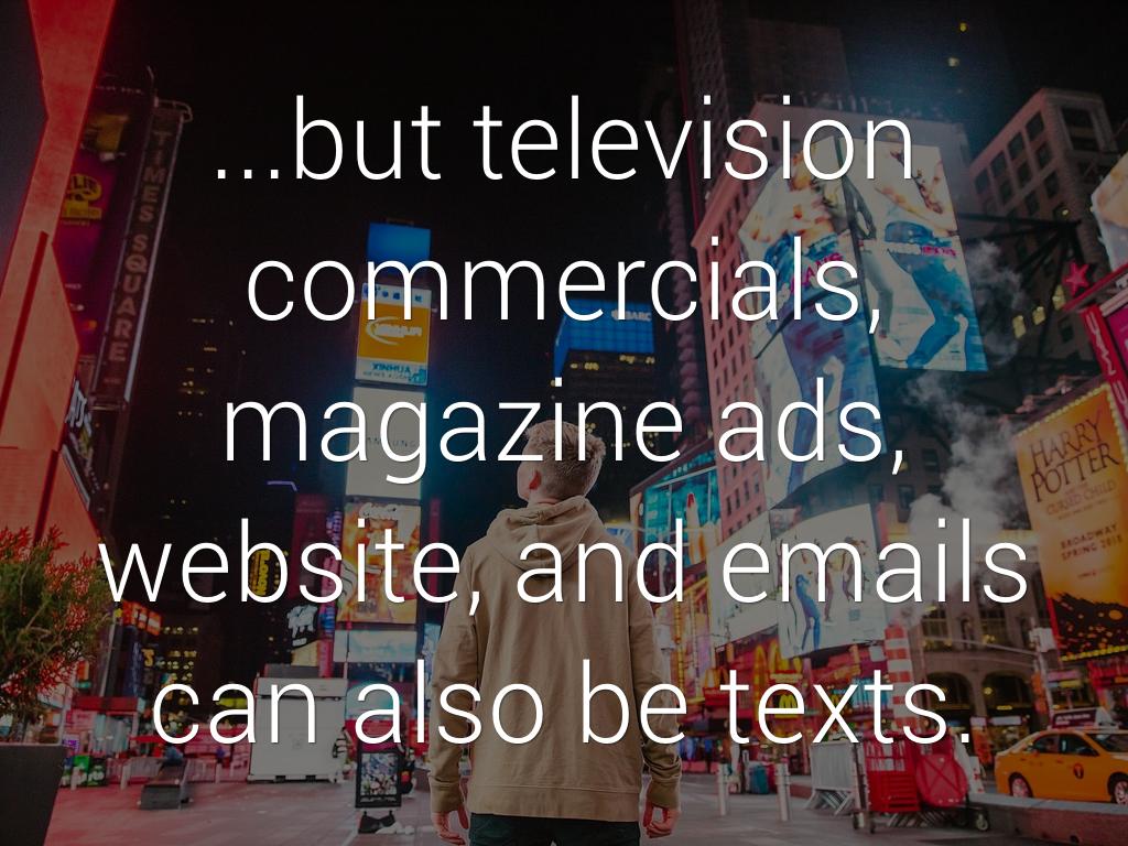 ...but television commercials, magazine ads, website, and emails can also be texts.