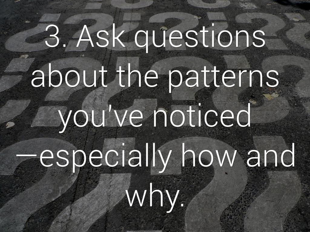 3. Ask questions about the patterns you've noticed—especially how and why.