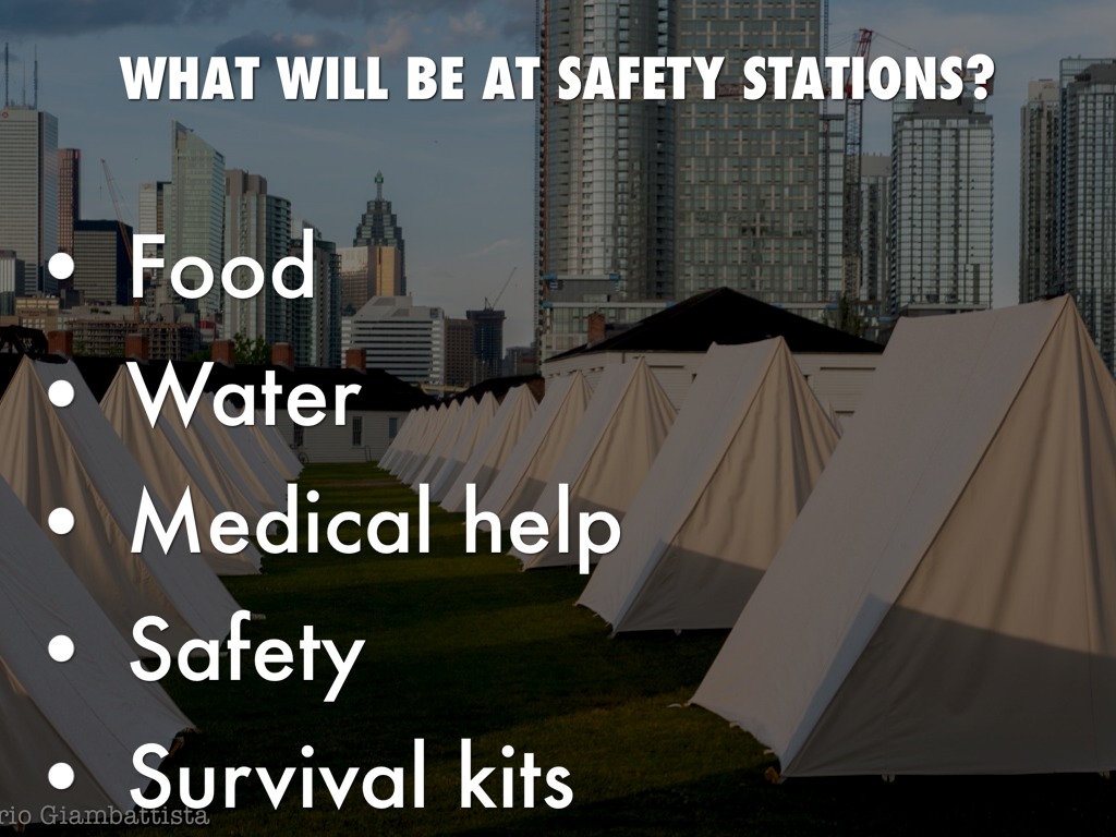• Medical stations should be set up along the path to safety.
