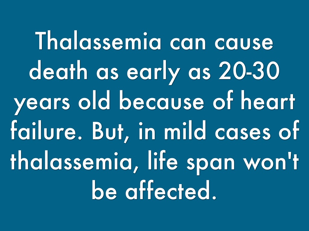 Thalassemia can cause death as early as 20-30 years old because of heart failure. But, in mild cases of thalassemia, life span won't be affected.