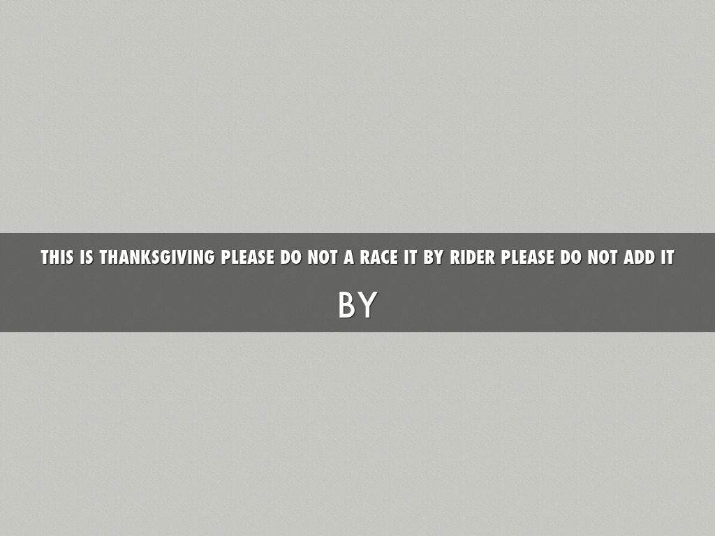 THIS IS THANKSGIVING PLEASE DO NOT A RACE IT BY RIDER PLEASE DO NOT ADD IT