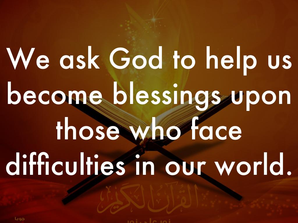 We ask God to help us become blessings upon those who face difficulties in our world.