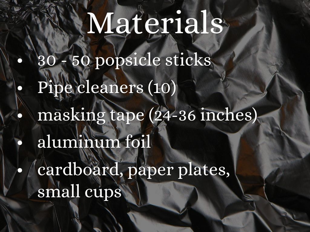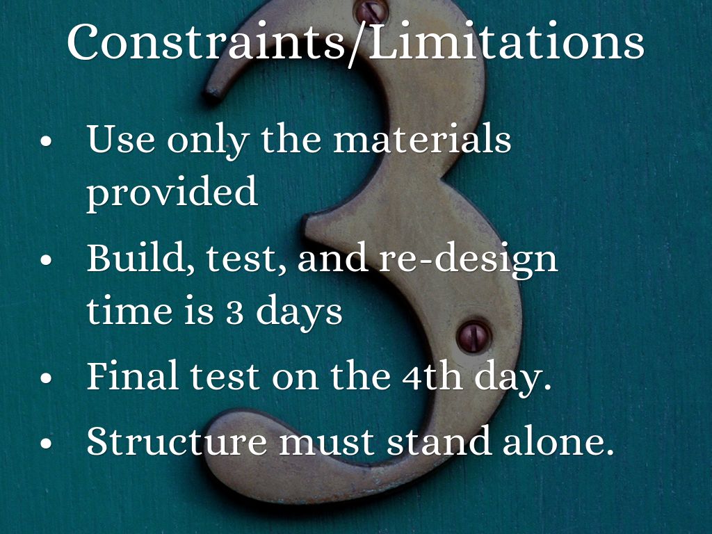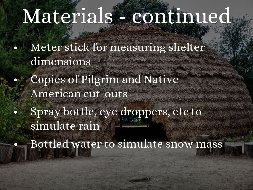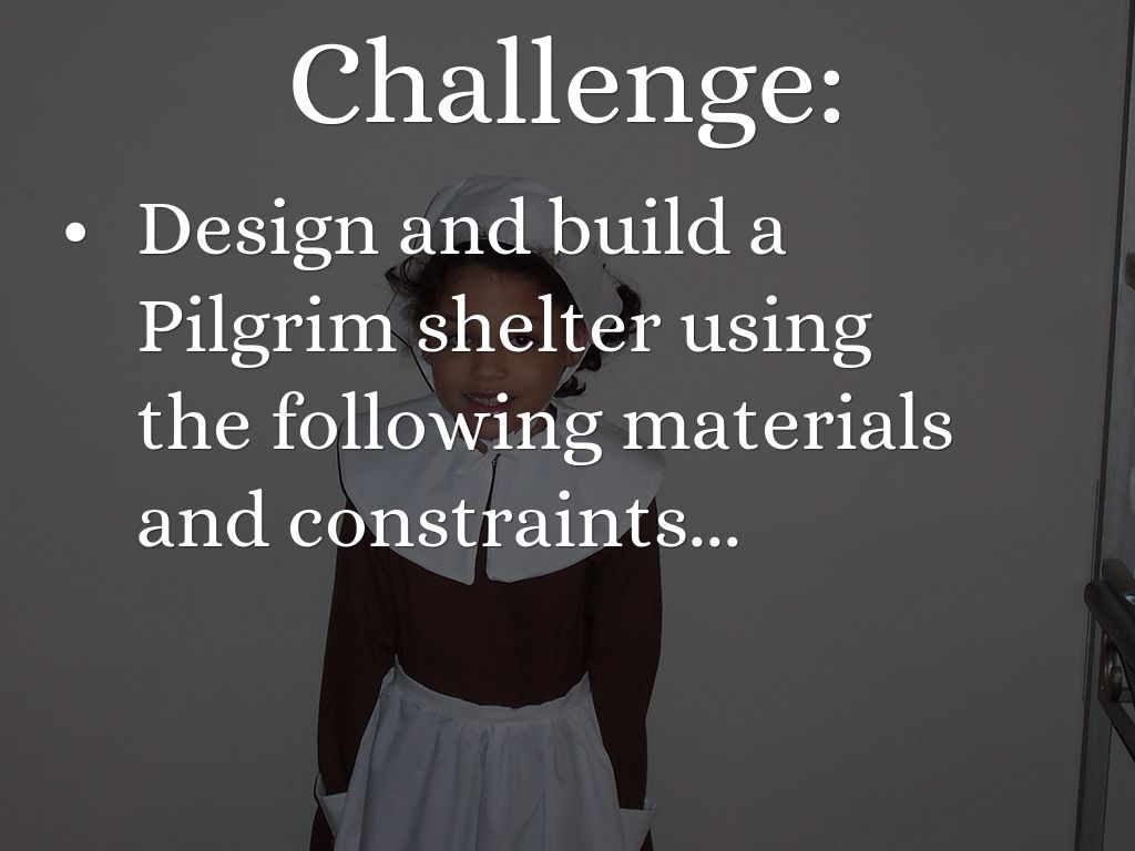 • Design and build a Pilgrim shelter using the following materials and constraints...