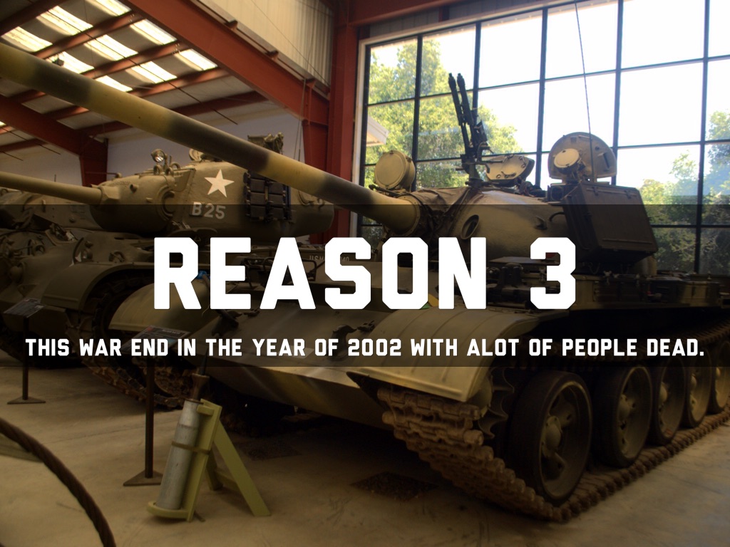 THIS WAR END IN THE YEAR OF 2002 WITH ALOT OF PEOPLE DEAD.