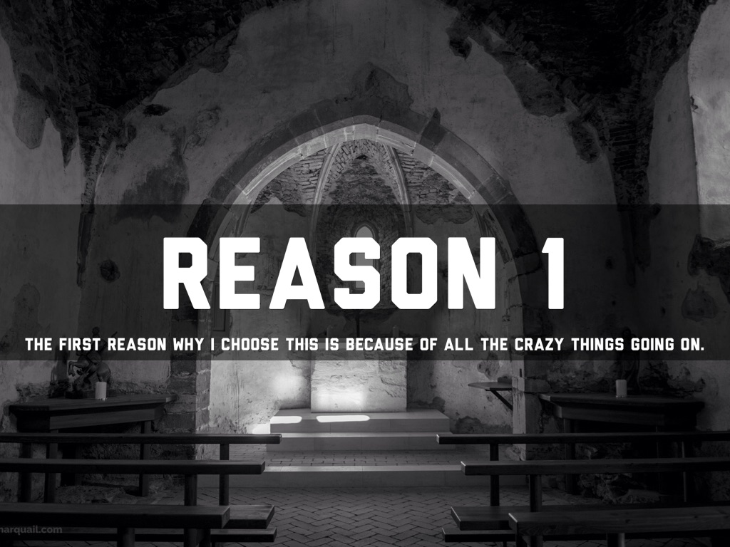 THE FIRST REASON WHY I CHOOSE THIS IS BECAUSE OF ALL THE CRAZY THINGS GOING ON.