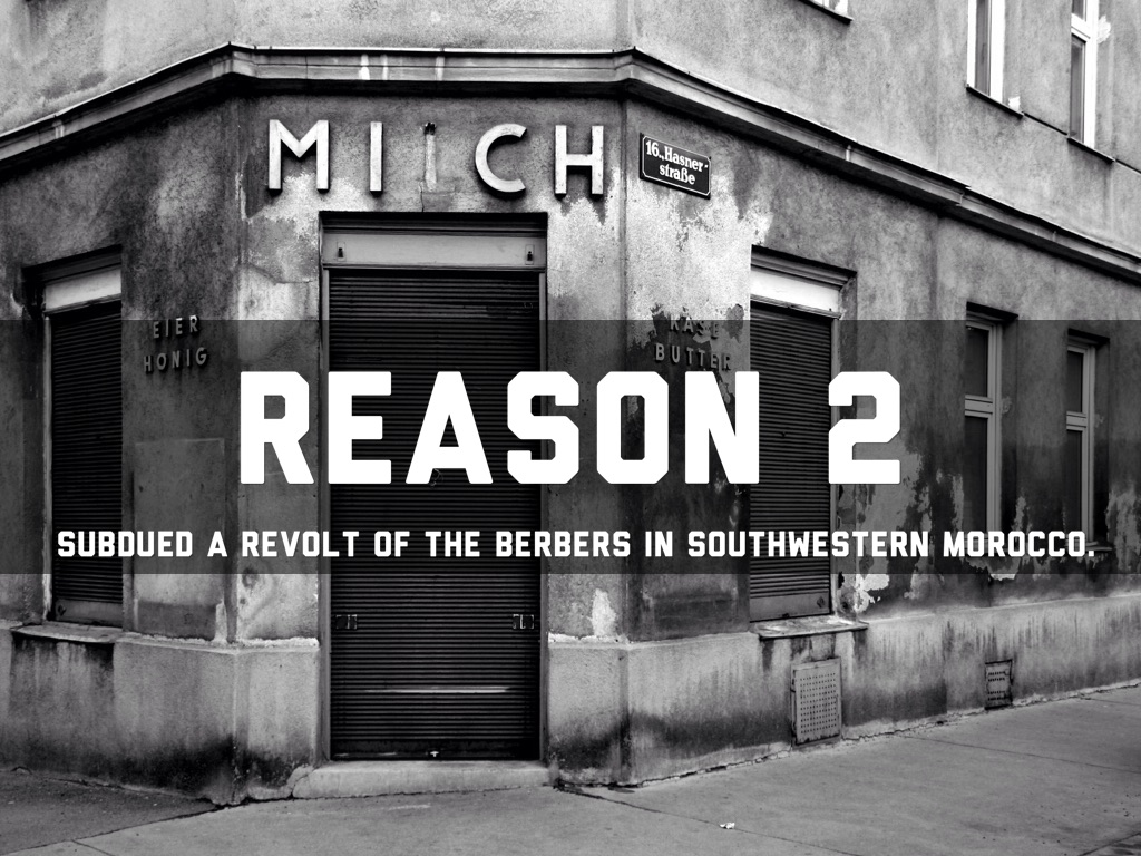 SUBDUED A REVOLT OF THE BERBERS IN SOUTHWESTERN MOROCCO.