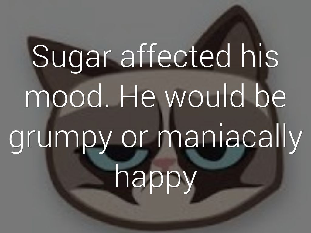 Sugar affected his mood. He would be grumpy or maniacally happy