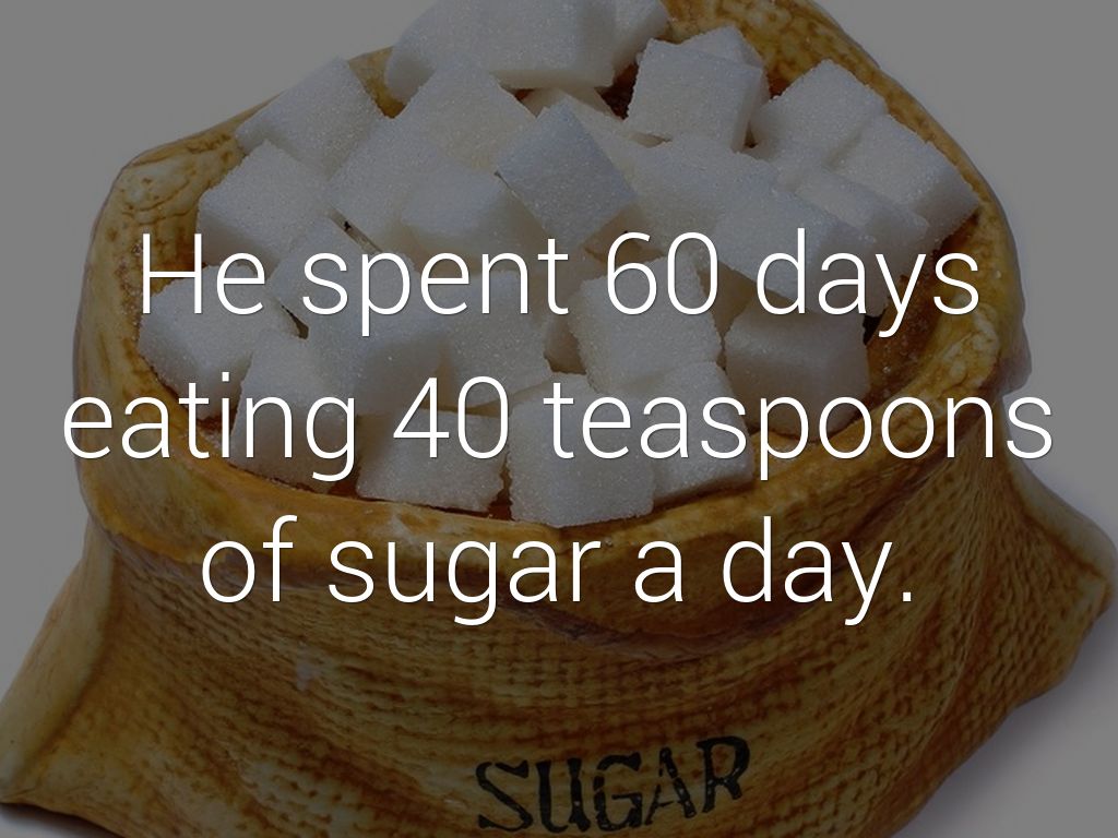 He spent 60 days eating 40 teaspoons of sugar a day.