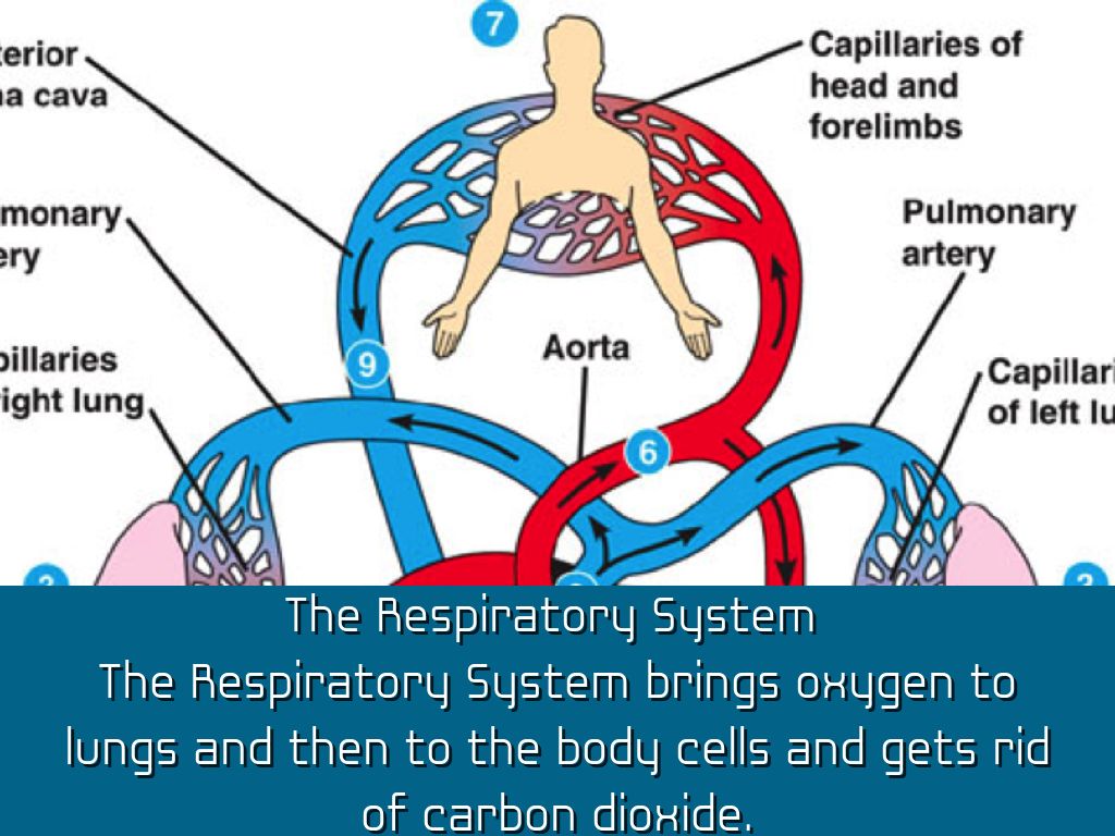 The Respiratory System brings oxygen to lungs and then to the body cells and gets rid of carbon dioxide.