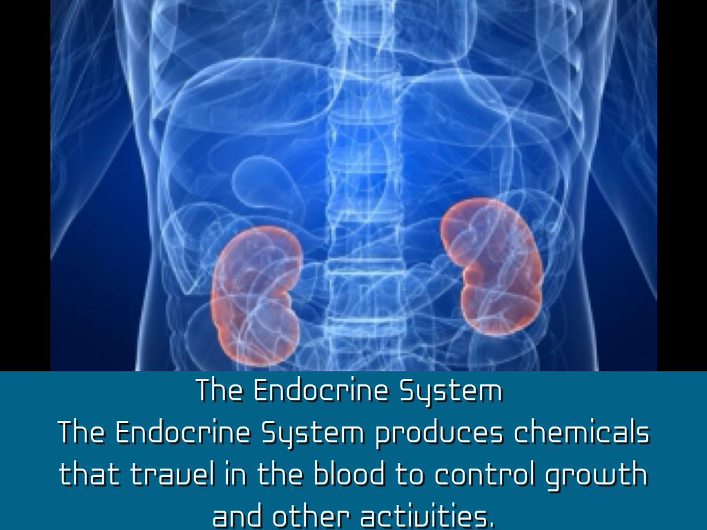 The Endocrine System produces chemicals that travel in the blood to control growth and other activities.