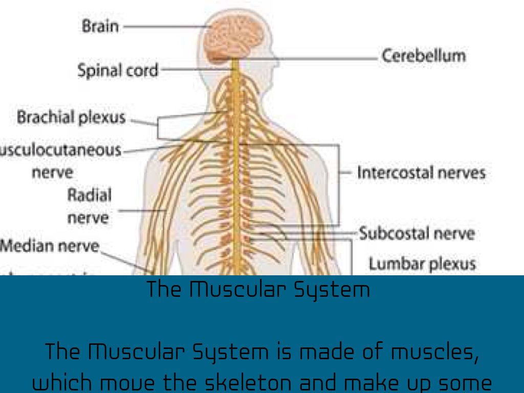 The Muscular System is made of muscles, which move the skeleton and make up some organs.