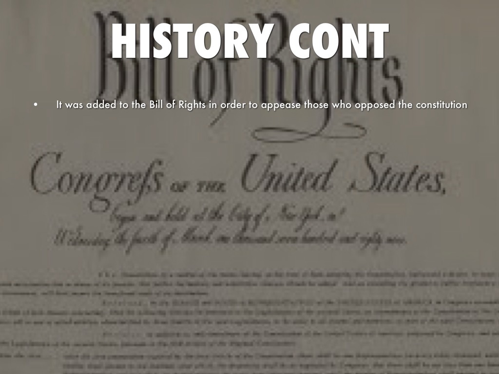 It was added to the Bill of Rights in order to appease those who opposed the constitution