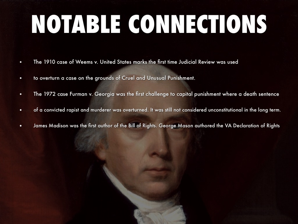 Virginia adopted these provisions in the Virginia Declaration of Rights of 1776 and recommended them to be added to the constitution