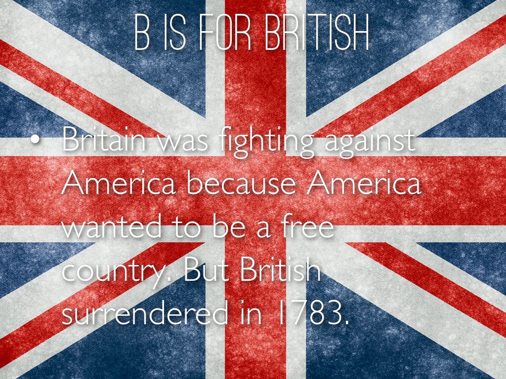 Britain was fighting against America because America wanted to be a free country. But British surrendered in 1783.