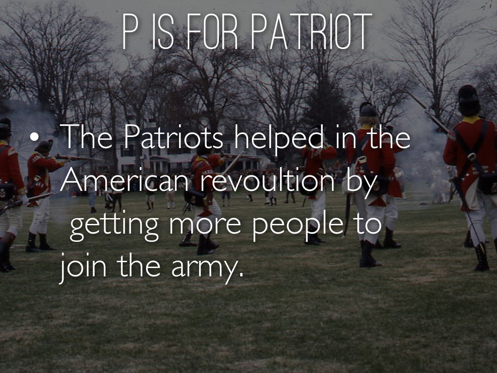 The Patriots helped in the American revoultion by getting more people to join the army.