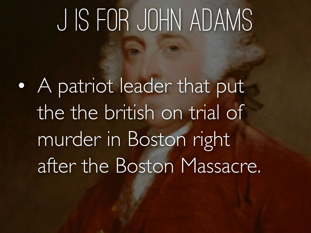 A patriot leader that put the the british on trial of murder in Boston right after the Boston Massacre.