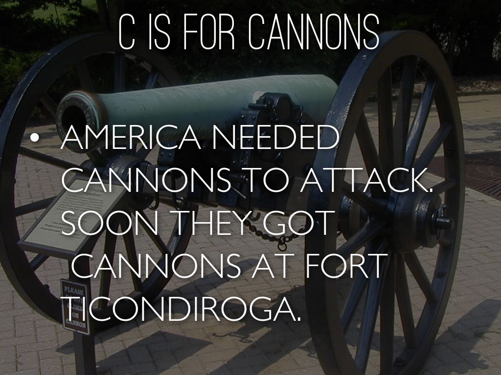 AMERICA NEEDED CANNONS TO ATTACK. SOON THEY GOT CANNONS AT FORT TICONDIROGA.