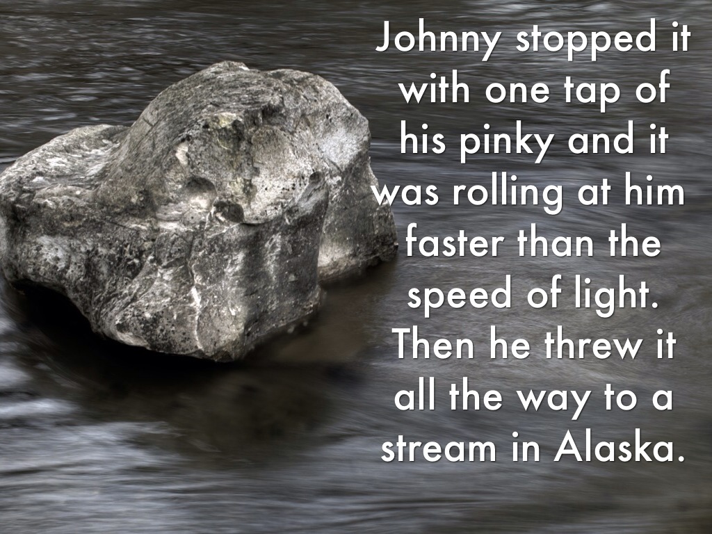 Johnny stopped it with one tap of his pinky and it was rolling at him faster than the speed of light. Then he threw it all the way to a stream in Alaska.
