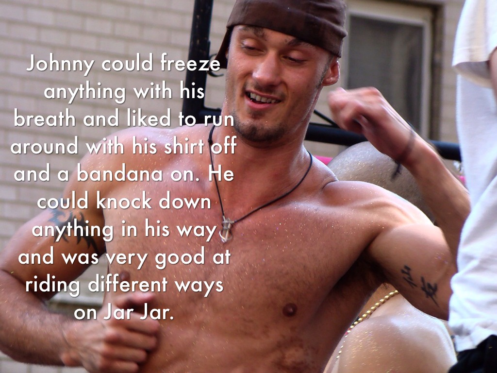 Johnny could freeze anything with his breath and liked to run around with his shirt off and a bandana on. He could knock down anything in his way and was very good at riding different ways on Jar Jar.