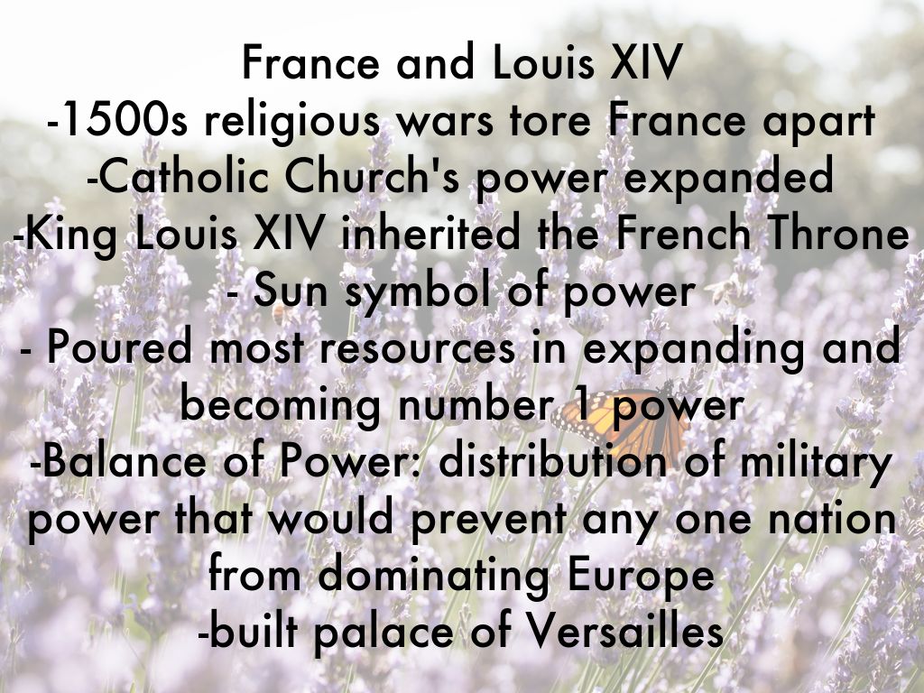 -Ruled with absolute authority for 72 years and during that time French was the dominate culture (in language, manners, customs, etc.) in Europe
