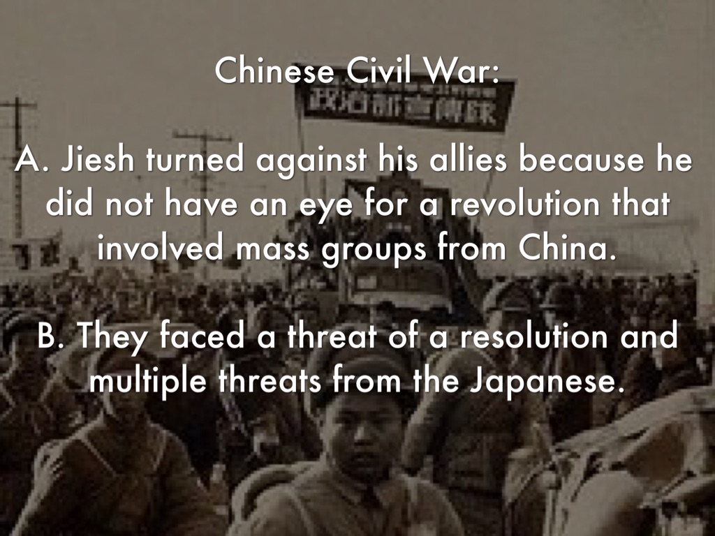 A. Jiesh turned against his allies because he did not have an eye for a revolution that involved mass groups from China.