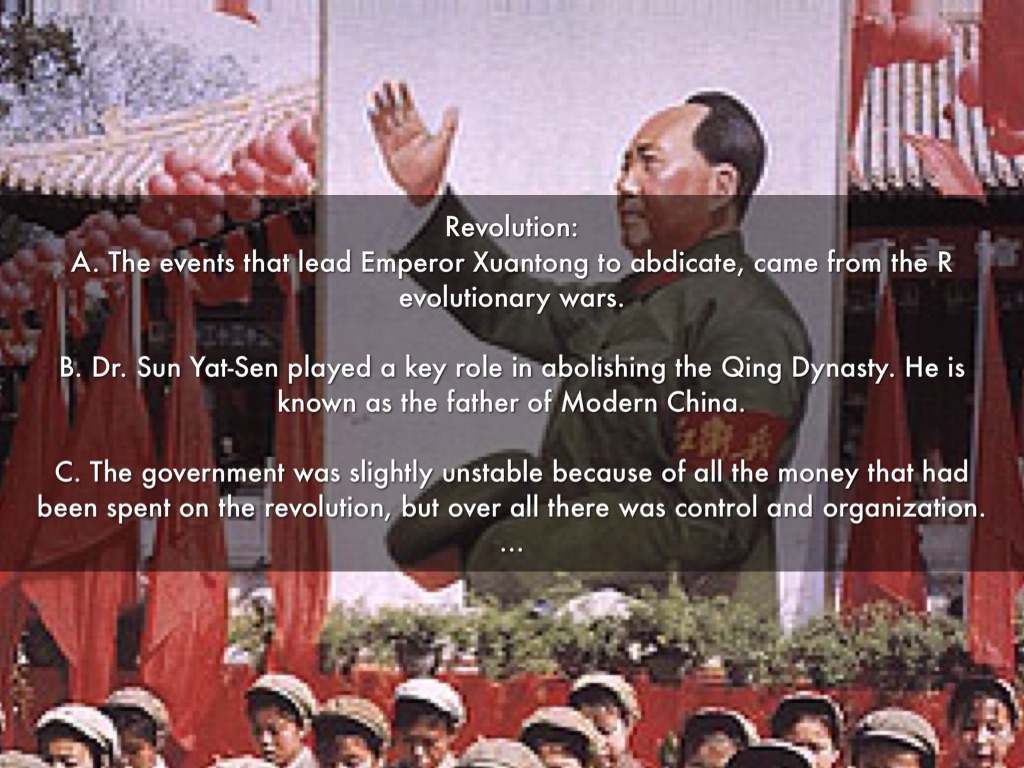 A. The events that lead Emperor Xuantong to abdicate, came from the R evolutionary wars.