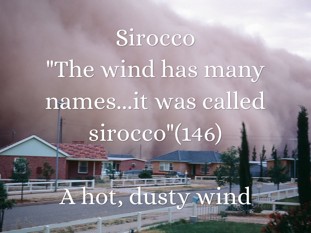 "The wind has many names...it was called sirocco"(146)