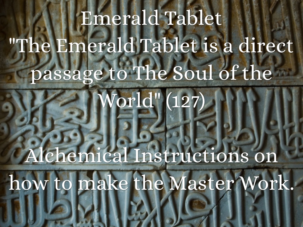 "The Emerald Tablet is a direct passage to The Soul of the World" (127)