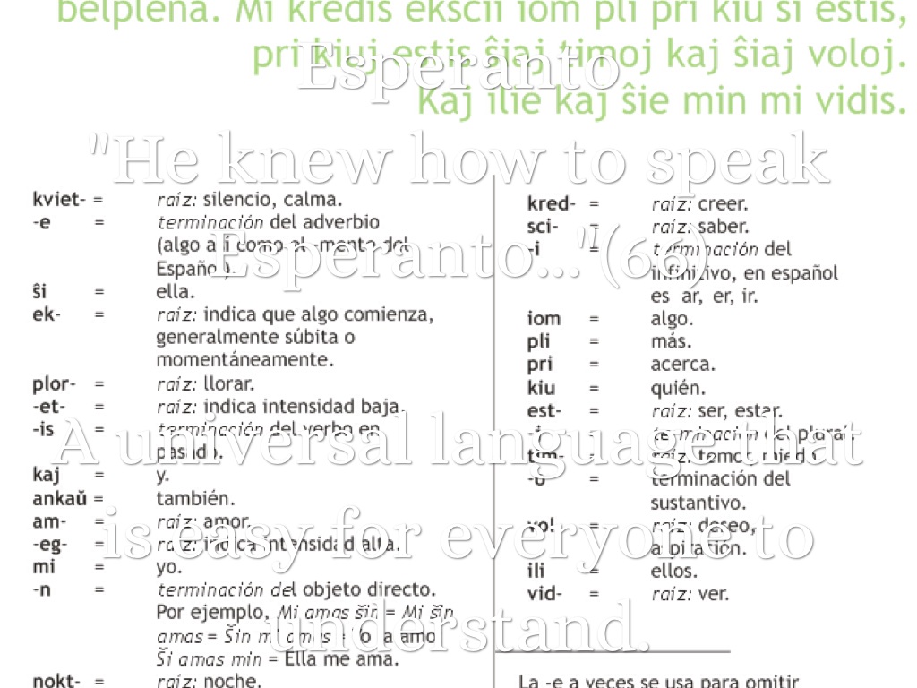 "He knew how to speak Esperanto..."(66)