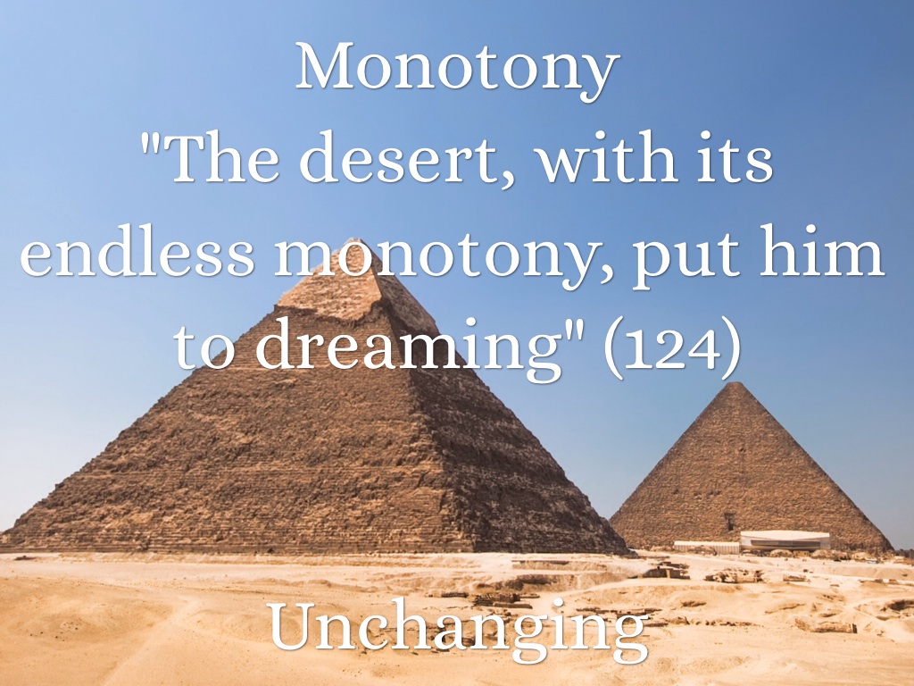 "The desert, with its endless monotony, put him to dreaming" (124)