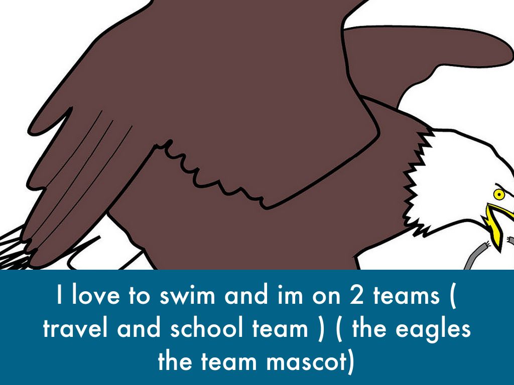 I love to swim and im on 2 teams ( travel and school team ) ( the eagles the team mascot)