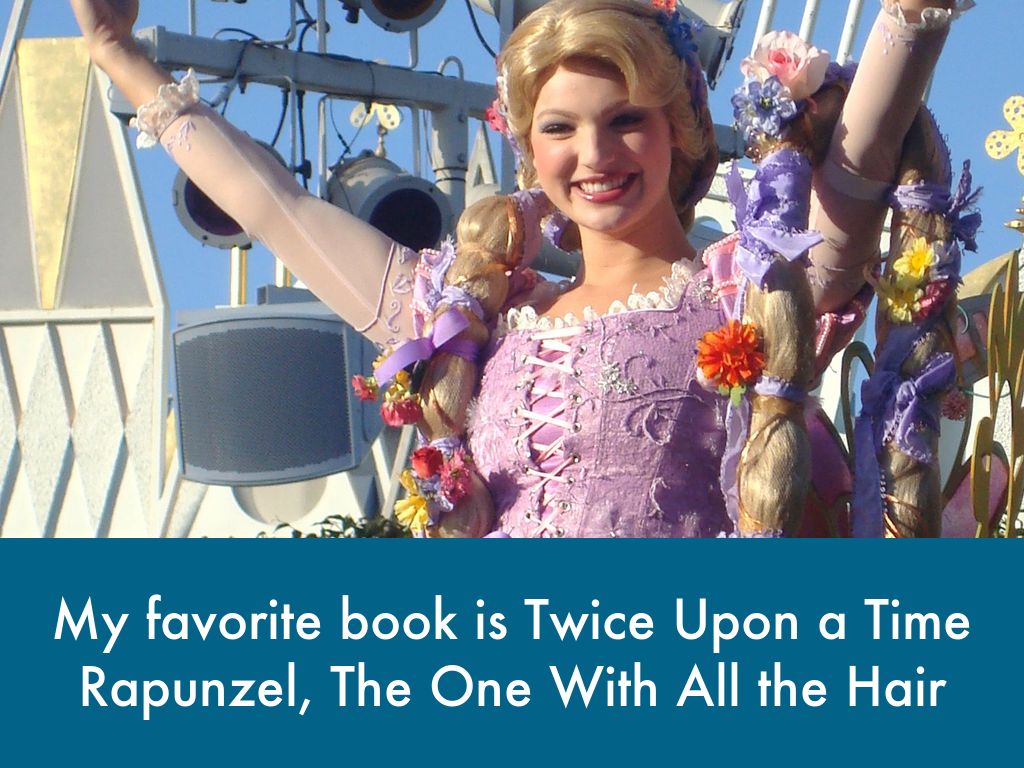 My favorite book is Twice Upon a Time Rapunzel, The One With All the Hair