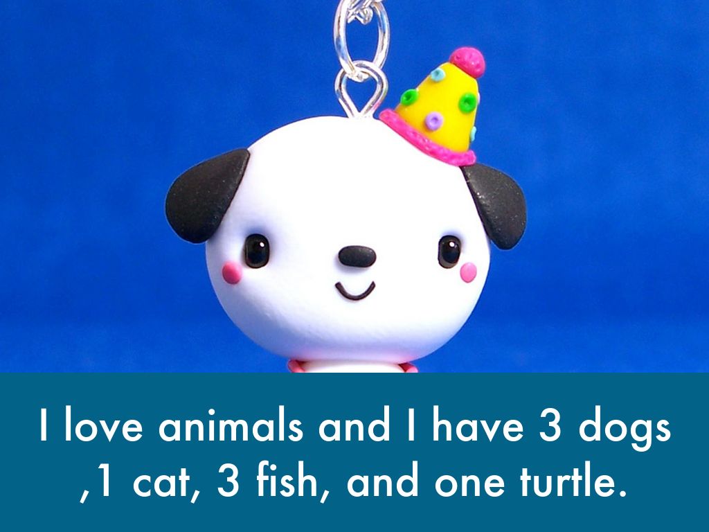 I love animals and I have 3 dogs ,1 cat, 3 fish, and one turtle.