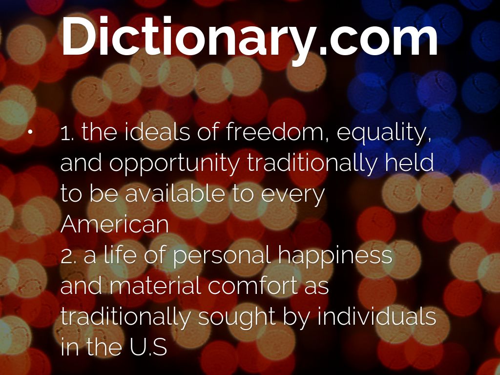1. the ideals of freedom, equality, and opportunity traditionally held to be available to every American