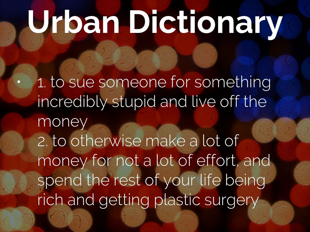 1. to sue someone for something incredibly stupid and live off the money