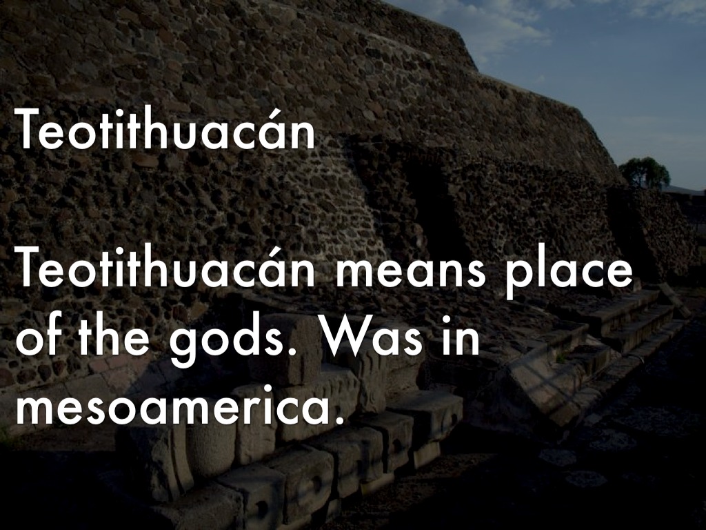 Teotithuacán means place of the gods. Was in mesoamerica.