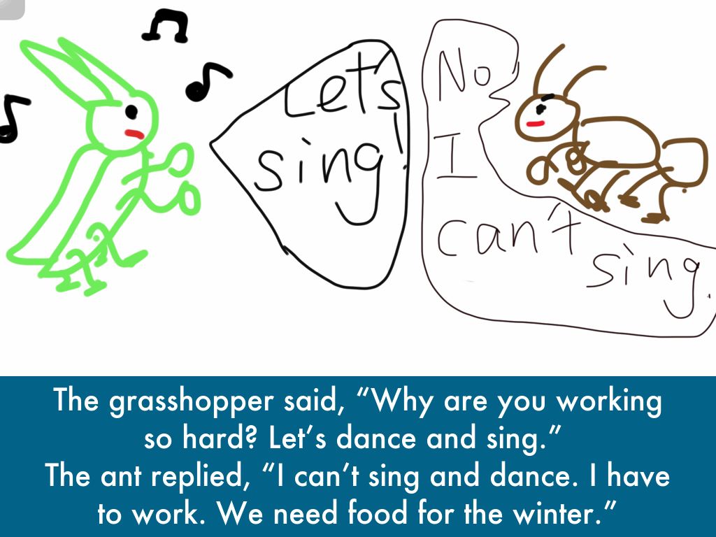 The ant replied, “I can’t sing and dance. I have to work. We need food for the winter.”