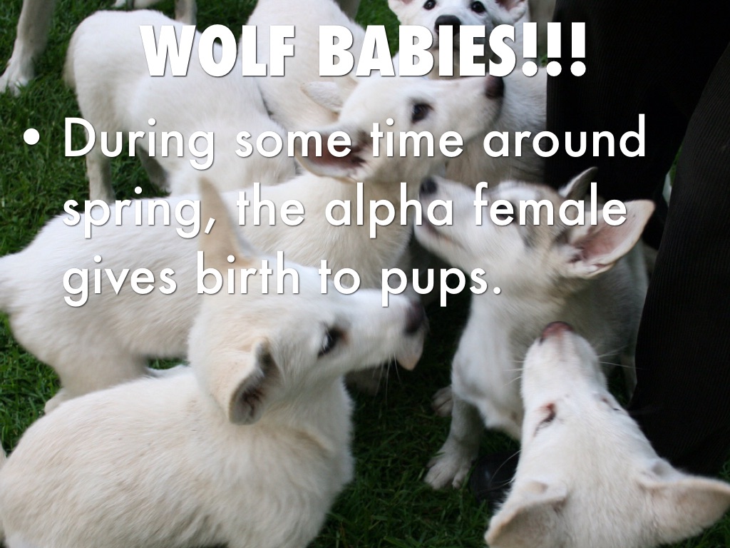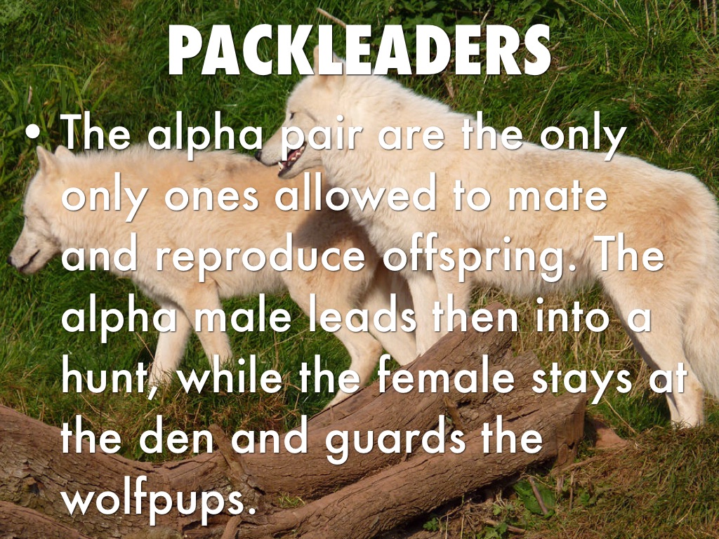 The alpha pair are the only only ones allowed to mate and reproduce offspring. The alpha male leads then into a hunt, while the female stays at the den and guards the wolfpups.