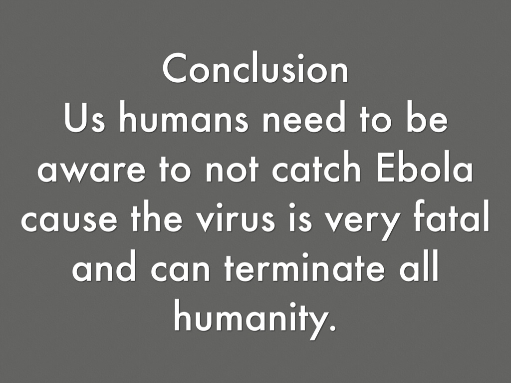 Us humans need to be aware to not catch Ebola cause the virus is very fatal and can terminate all humanity.