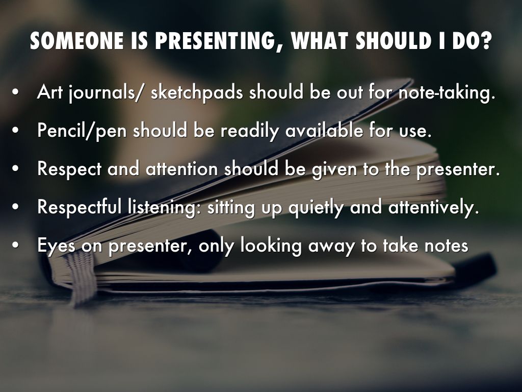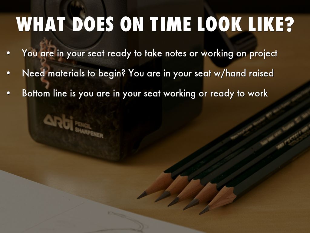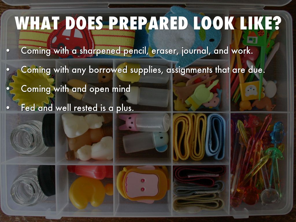 • Coming with a sharpened pencil, eraser, journal, and work.