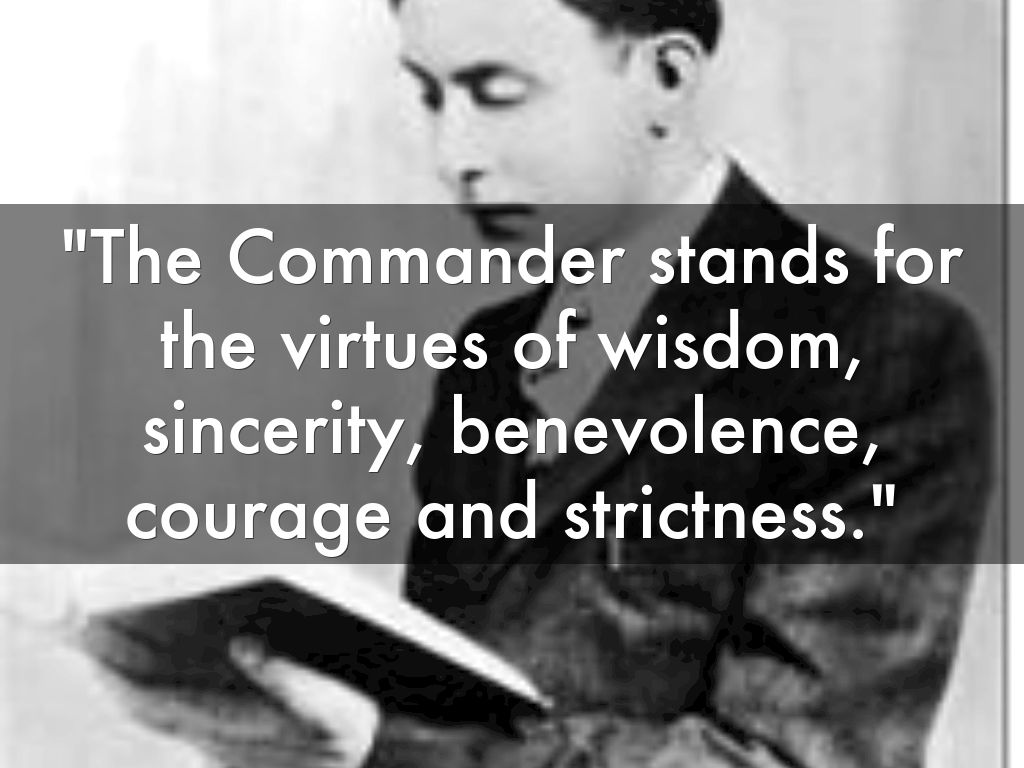 "The Commander stands for the virtues of wisdom, sincerity, benevolence, courage and strictness."