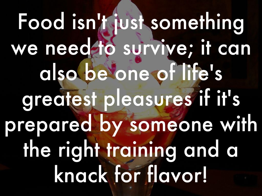 Food isn't just something we need to survive; it can also be one of life's greatest pleasures if it's prepared by someone with the right training and a knack for flavor!