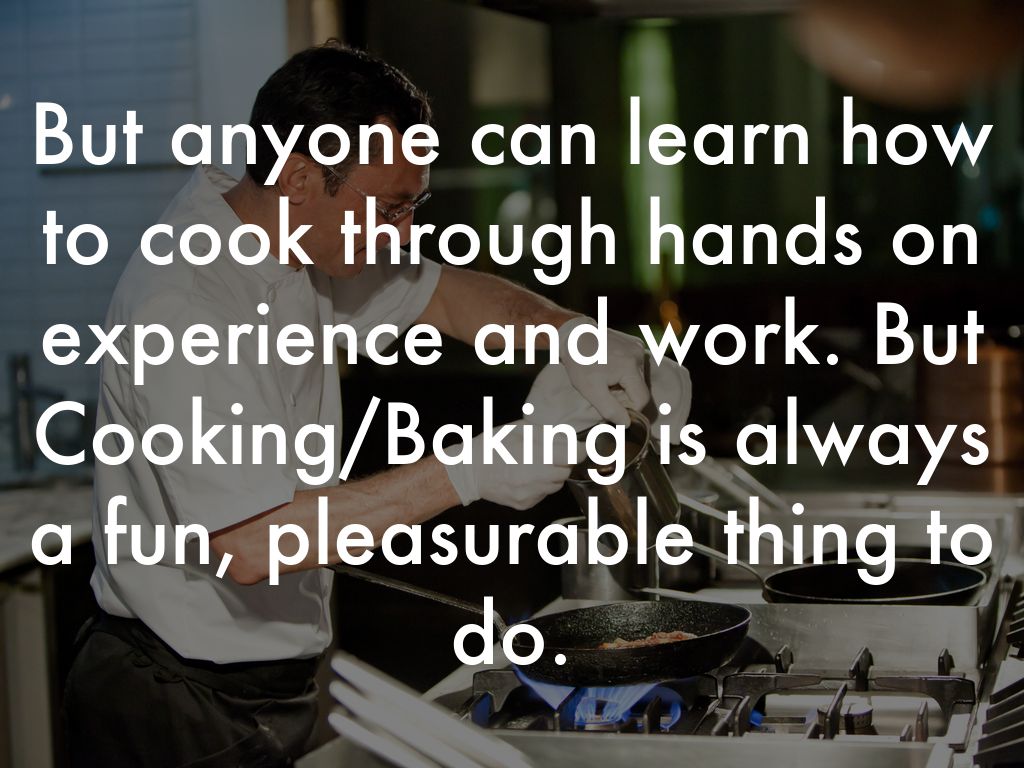 But anyone can learn how to cook through hands on experience and work. But Cooking/Baking is always a fun, pleasurable thing to do.