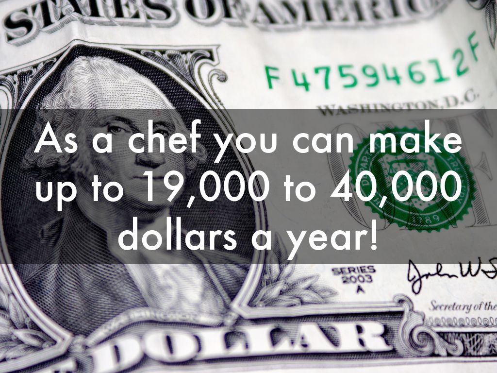 As a chef you can make up to 19,000 to 40,000 dollars a year!