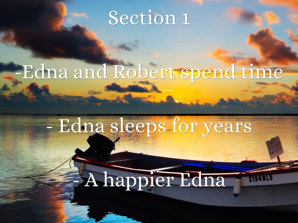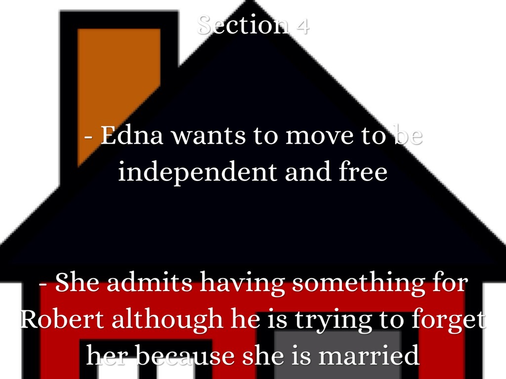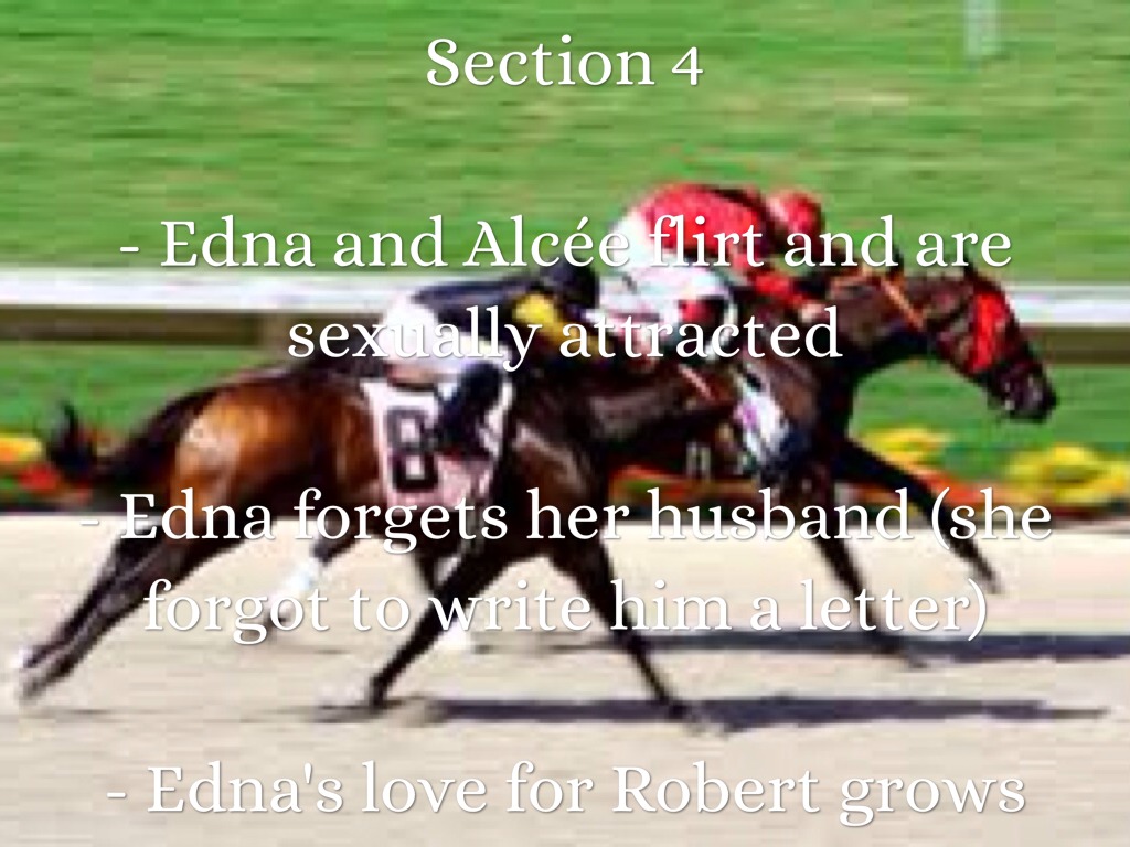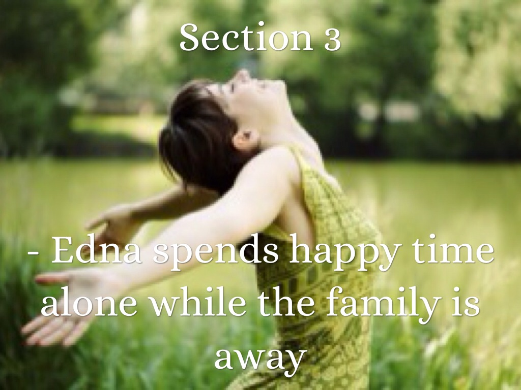- Edna becomes independent and single leaving her family (doesn't want to be demanded by Léonce) and forgetting Robert (she felt he would never understand her, hope was gone)
